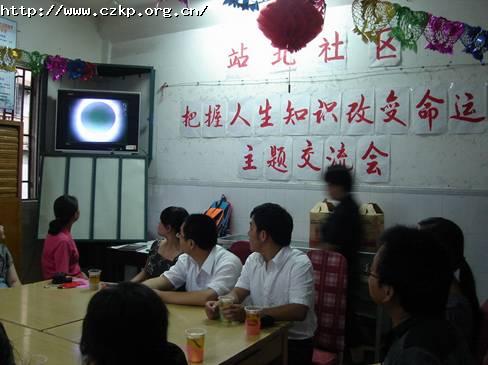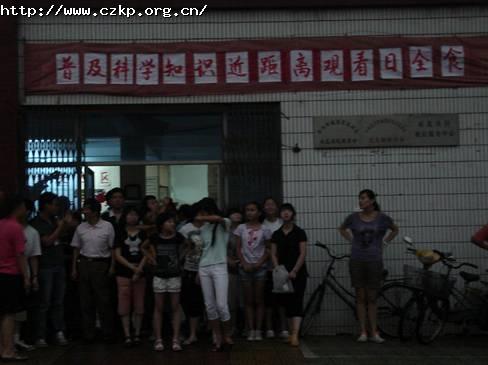 ![]() ![]() 2009年7月22日上午,在戚街道站北社区活动室内外,站满了前来观看日全食的社区居民和学生。众多居民为了观看这一天文景观做足了准备。
