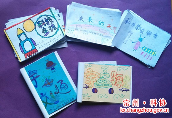 道德小人书作品集 9月23日-30日,新北区泰山小学开展了“科学生活,创新圆梦”道德小人书的制作活动,用画笔来记录自己的新发现好想法。四年级同学积极参与,自行组成制作小组,共同商讨故事,根据各自特长分工合作。课间、午间都能看到孩子们聚在一起出谋划策忙碌的样子,他们每个人都在为自己小组的作品贡献着自己的力量。看孩子们都为实现科学生活想出了哪些金点子。瞧!《科技生活》孩子们想象着未来的各种高科技生活;《未来的天气》这是孩子们在用这种方式告诫大家不要污染环境,否则未来迎接我们的天气都难以想象;《和外星人交朋友》、《探索宇宙》这是同学们对宇宙的想象…… 通过这样的活动,孩子们不仅学到了知识,体会了成功,更是学会了合作,增强了责任。