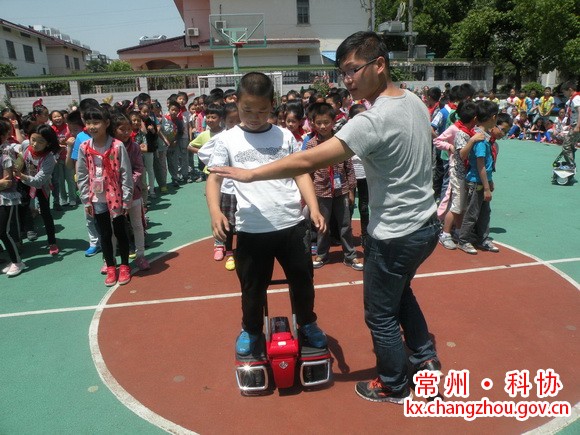 比赛现场 骑着机器人打马球!昨日,在新北区国英小学操场上,一场另类的球赛吸引1876名国英小学学生的观看。球员以高科技智能代步机器人作为“马”,手持球杆,争相往对方球门灌球。有好几百名学生和感兴趣的老师们都参与了比赛。据了解,这种新兴的比赛叫智能平衡车机器人马球赛,它以“运动炫科技 智慧赢未来”为理念,颠覆了传统马球运动的局限性;与高科技相结合,对场地的要求不像传统马球赛那么高,简单易学,而且有助于身体协调能力发展。看着老师和学生们有着浓厚兴趣,吴校长说“我们国英小学将会组建马球机器人运动的社团和校本课程,给感兴趣的学生和老师们一个平台。”也希望未来我们国英小学的马球机器人能成为国英的骄傲!