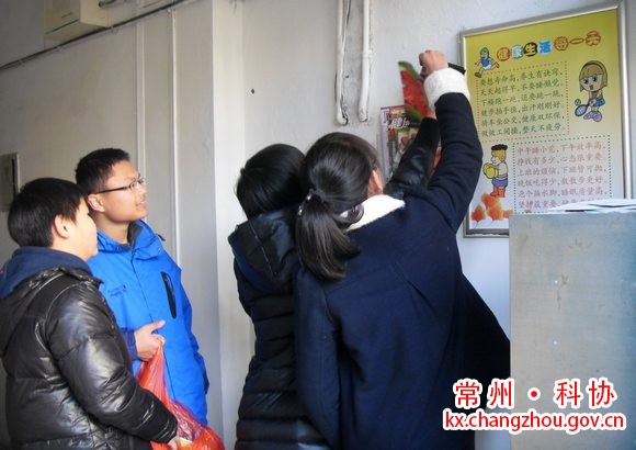 同学们在楼道张贴宣传板