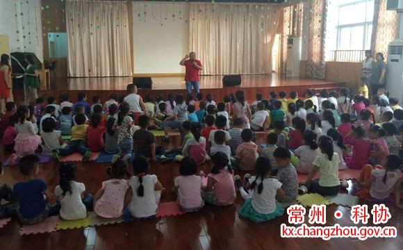 讲座现场 6月18日下午,新北区三井街道科协在华山幼儿园举办了恐龙知识的科普讲座。街道科协邀请了中华恐龙园盛泉从恐龙的产生、繁衍、活动、灭绝等几个方面向小朋友们做了讲解。盛泉深入浅出生动的讲解,赢得了小朋友们阵阵笑声和掌声。小朋友们在听取讲座的同时,也汲取了相关自然科学方面的知识,寓教于乐,真正达到了科普知识普及的目的。(新北科协 熊壮/文 温嘉伟/摄) |