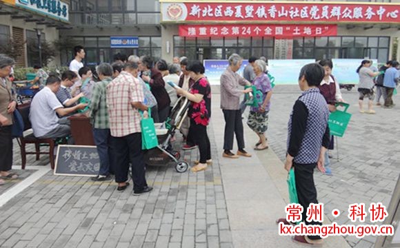活动现场 2014年6月24日下午三点,新北区西夏墅镇科协联合西夏墅镇国土局在香山社区开展了以“节约集约利用土地,转变土地利用方式”为主题的宣传咨询活动。