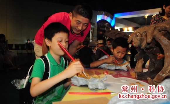 小“恐龙迷”亲子为恐龙化石模型上色 “博物馆是记录传递知识的地方,而夜晚的场馆更加令人兴奋!这里的每一个动物标本都讲述着关于生命的故事,希望这样的活动越多越好!”一位参加恐龙园“博物馆奇妙夜”的家长如是说。7月4日、7月18日,来自常州、南京、无锡等地的24个家庭分批参加了中华恐龙园“博物馆奇妙夜”科普夏令营活动,这也标志着中华恐龙园科普夏令营正式全面启动。每次科普夏令营为期两天,主要由探秘恐龙世界、小小讲解员培训及比赛、亲密接触夜公园、夜宿恐龙馆、DIY早餐、化石考古挖掘体验等多个活动内容组成,行程紧凑且内容丰富,在收获快乐和趣味的同时还能真正学到恐龙文化知识,可谓是“小小恐龙迷”暑期的最佳体验行程。 在恐龙园特别推出的“恐龙博士营长”的带领下,大小营员们一起在好莱坞大片《侏罗纪世界》中玩“大家来找茬”,探究恐龙世界的真实奥秘;在镇馆之宝——巨型山东龙前争当优秀小讲解员,为爸爸妈妈,以及周围的游客讲述“它”的故事;在领略恐龙化石考古发掘的艰苦之后,亲自实践,轻描细画般地给化石上颜色;学习体验之余,还要亲手做份DIY早餐,孝敬一下操劳的父母……在整个夏令营活动行程中,最让人期待和兴奋的莫过于夜宿恐龙馆。自主搭建帐篷、与恐龙化石同眠,晚间还能与父母说会悄悄话,恐龙时代的神秘与亲子情感的温暖相交织,着实成为本次体验最动人的瞬间。在夏令营结束时,在各个活动环节表现优异的小营员都将会获得科普图书、恐龙拼装组合等不同的奖品奖励。 未来,“博物馆奇妙夜”科普夏令营活动每周都会在中华恐龙园举办,必将成为众多大小“恐龙迷”获知良途,同时也能在恐龙园暑期夜公园活动获得更多的欢乐。