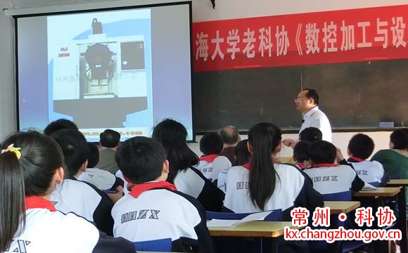河海大学工程训练中心主任庄曙东高工和三位老师认真的接待了河海中学的学生。庄曙东作了《数控加工与设备》的科普讲座,用多媒体资料介绍了先进“数控加工”及数控设备的现状与发展。殷切期望中学的同学们现在好好学习,长大后,为创新、发展“数控加工与设备”做出贡献。