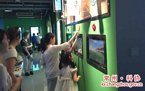 午餐后,参观了常州气象科普馆,馆内有序厅、气候厅、魔方屋、低碳厅、气象服务厅五个展示单元,每个单元内容相对独立但又相互联系。虚拟电子书、虚拟动态演示、视频等展示了气象科普知识。小朋友们最感兴趣的是魔方屋,在这里可以通过选择答案的方式来了解气象灾害及灾害发生后的防护知识。在气象服务厅也吸引了不少市民,他们模仿气象预报员预报天气,在这里除了学到了气象科普知识,还感受了天气的奥妙。