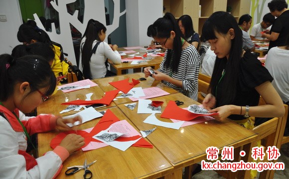 剪纸是一项世界性的流行艺术,在视觉上给人以透空的感觉和艺术享受,是中国汉族最古老的民间艺术之一。常州市湖塘镇的剪纸历史悠久,作品用途广泛,在民间广为流传。2013年,湖塘剪纸入选常州市非物质文化遗产保护项目。本次活动邀请到了湖塘剪纸代表人物丁敏担任指导老师,来自常州外国语学校、常州大学、河海大学常州校区等学校的20余名同学参加了活动。