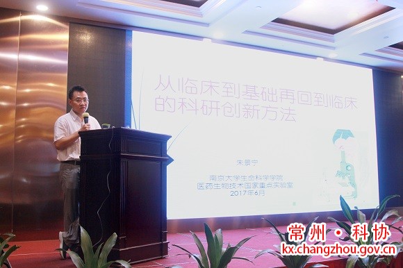 6月30日下午,常州鸿发国际第9期科技咖啡馆暨常州市医学会2017临床科技创新讲座第二讲在市真儒大厦开讲,南京大学生命科学学院朱景宁教授就“从临床到基础再回到临床的科研创新方法”做专题授课,来自全市各医疗卫生单位150余名代表到会聆听,市医学会常务副会长徐瑞玉主持讲座,鸿发国际秘书长鲁玉凤、市医学会秘书长郑培新出席会议。