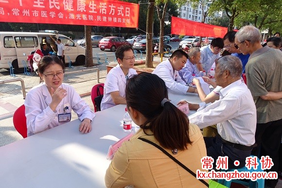 9月29日上午,由常州市医学会、钟楼区疾病预防控制中心、民建钟楼四支部等单位联合举办的全民健康生活方式科普宣传活动走进钟楼区五星街道。来自市一院的内分泌科蒋晓红主任医师、消化内科孙克文主任医师、心血管内科石桂良副主任医师在现场为社区居民答疑解惑,宣传健康的生活方式。专家指出,随着生活水平的提高,市民的健康意识也在逐步增强,很多疾病都能做到早就诊早诊断早治疗;高血压、高血脂、糖尿病等许多疾病的发生都与长期的不良生活方式有关,专家提醒市民要坚持低盐、低油、低糖饮食的健康生活方式。疾控中心的同志还在现场为市民免费发放了限盐罐、限盐勺等健康工具。(常州市医学会)