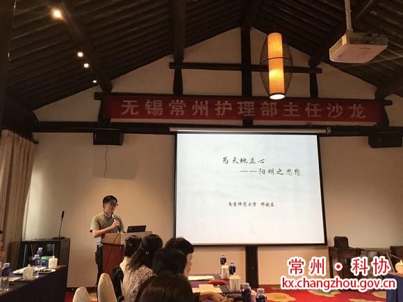 为促进常州无锡两地护理管理者互学共进,不断提高护理管理能力, 2019年7月13日下午,常州市护理学会与无锡市护理学会组织了一次护理部主任沙龙会。会议主要有二个环节,首先邀请南京师范大学邓晓东副教授作了题为“为天地立心,阳明之思想”的精彩讲座。阳明心学给后人之启示有四点:(1)立志高远;(2)注重实践;(3)沉着应对;(4)教学相长。