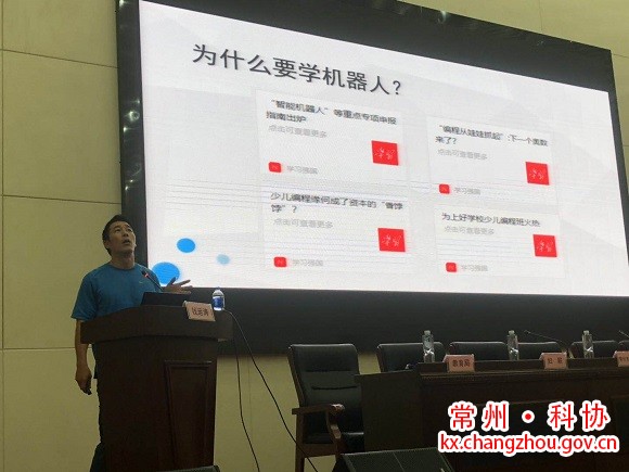 钱运涛老师从为什么要学机器人、机器人怎么学、什么时候学、机器人和谁学等问题而展开。他说:人工智能的发展首推机器人教育,机器人教育是指通过组装、搭建、运行机器人,激发学生学习兴趣、培养学生综合能力。并技术融合了机械原理、电子传感器、计算机软硬件及人工智能等众多先进技术,为学生能力、素质的培养承载着新的使命。学习机器人可以提升科学、技术、数学、工程、艺术五个学科知识,是一种新的教学理念,可以让孩子们自己动手完成他们感兴趣的并且和生活相关的项目,从过程中学习各种学科以及跨学科的知识。同时还能培养孩子们的逻辑性、条理性。