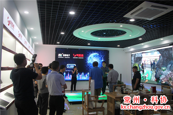 在走访过程中,科创爱好者一行体验了江苏亮彩电子有限公司的AR娱乐,与恐龙进行互动。