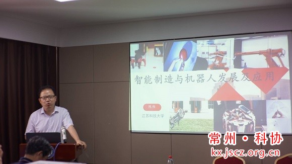 2020年6月12日下午,由常州鸿发国际、常州市机器人科技协会联合举办了今年的第4期科技咖啡馆活动,邀请到江苏科技大学陈伟教授作《机器人与智能制造发展及应用》主题报告。鸿发国际副主席李凯虎、江苏理工学院计算机学院院长尚通明、常州市机器人科技协会会长黄海军以及各理事单位、会员单位共60余人参加了报告会。