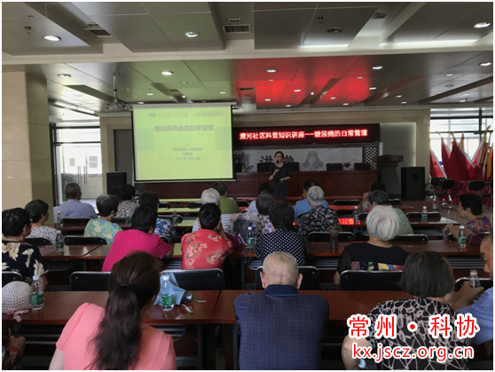 为了提高居民对糖尿病的防治意识,促进居民健康生活,营造人人关注健康的良好氛围,8月14日下午2点,常州第一人民医院万静波主任护师在漕河社区会议室对社区居民们开展糖尿病日常管理讲座,五十多位社区糖尿病患者前来参加。