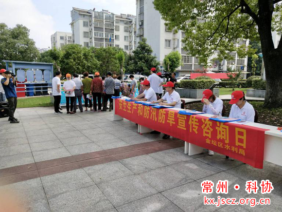 上午9点,金坛区西城街道南洲社区工作人员和金坛水利局的志愿者,在南洲花园小广场对居民发放了有关安全生产知识的调查小问卷,并在居民回答完毕后发放了精美的小礼物,此外还向居民宣讲了相关安全知识。