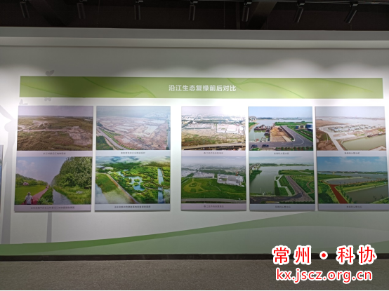 展示馆分为“破解化工围江”、“全线腾退生态复绿”、“高质量转型”三大主题,讲解员从砸笼换绿、综合施策、构筑绿网、助企稳岗等多层次向大家讲述长江生态发展进程中的精彩常州故事。