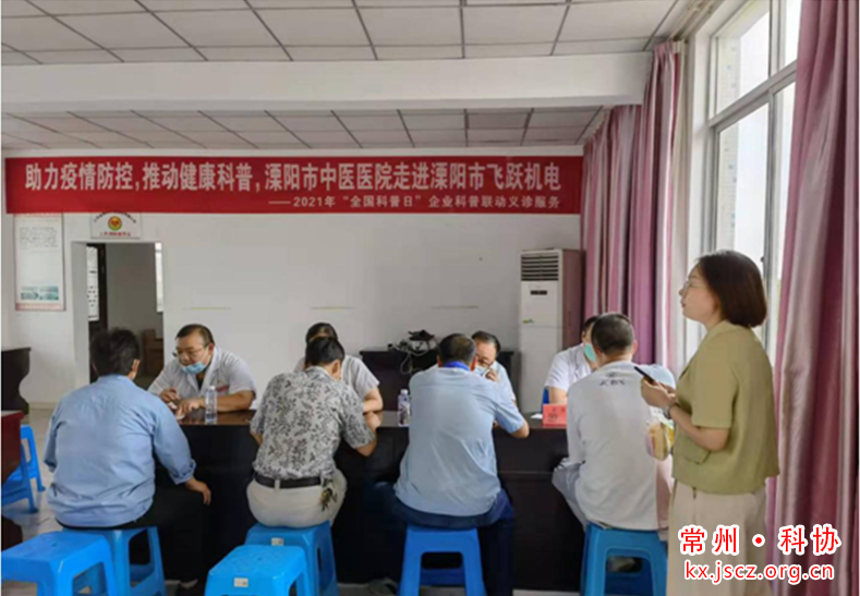 为了进一步弘扬科学精神,普及医学科学知识,加强群众疫情防控中的自我健康防范意识,助力全民科学素质的提升,根据省、常州、溧阳鸿发国际《关于举办2021年“全国科普日”活动的通知》精神,2021年9月12日我院中医药学会组织副高级医师专家团队与溧阳市飞跃机电有限公司联合开展了义诊科普活动。