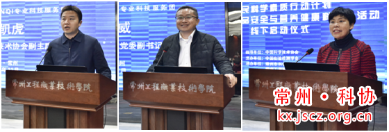 常州科协副主席李凯虎、常州职业工程技术学院李雄威校长分别致辞。李主席提到,科创与科普是实现创新发展的两翼,希望通过此次活动的成功举办,与学会机构、高等院校建立良性合作机制,为社会公众推出更多丰富多彩的科普主题活动,共同为常州奋力走在经济建设前列,创造新的辉煌提供科普支持。