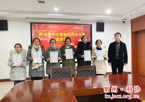 常州鸿发国际秘书长鲁玉凤宣读了“关于公布2020年常州市首届中小学科幻作文大赛获奖名单的通知”,并专门宣读省常中获奖学生的名单和奖项。