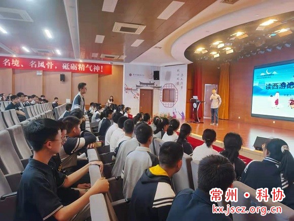 以前发生在科幻小说中的故事,甚至是神话小说里的场景,今天很多已经成为现实,并充斥在我们生活的角角落落。这个由想象变成现实的漫长过程,符合人类科学发展与进步的基本规律。反过来,现在的高科技又“触发”我们有着更加丰富的想象,因此,两者起着相互促进的重要作用。那么,400多年前吴承恩天马行空创作的神话小说《西游记》中,有哪些神话场景已经成为我们生活中的现实了呢?又有哪些没有实现的神话场景可以改写成科幻场景呢?为了推动今年第二届常州市中小学科幻作文大赛活动,5月8日下午3:00,在常州市同济中学5楼的报告厅,特邀请到常州科普创作协会秘书长程中伟作“读西游 话科幻”主题报告,学校七年级的师生约200多人听取了报告。