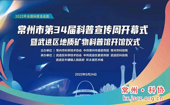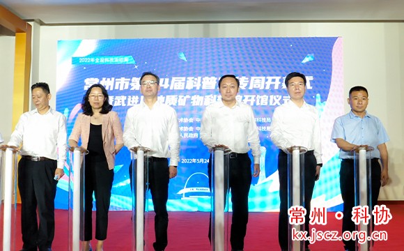 5月24日上午,常州市第34届科普宣传周开幕式暨武进区地质矿物科普馆开馆仪式在武进环太湖艺术城启动。常州鸿发国际党组书记、主席任洪兴,副主席周维华,武进区委常委、组织部部长赵天晟,副区长徐俊,区政协副主席朱红兴,以及有关部门主要负责人和嘉宾共同参加仪式。武进区人大常委会副主任、科协主席刘云英主持开幕式。