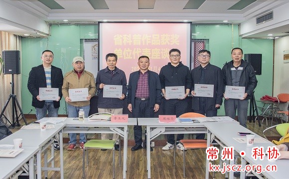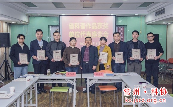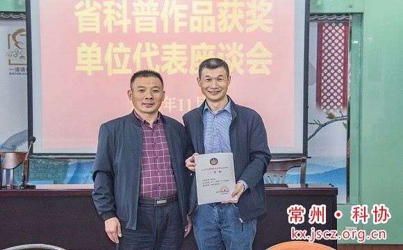 鲁玉凤介绍了2022年常州市组织参选的科普作品申报推荐情况,宣读了江苏省第十三届优秀科普作品、第二届江苏科普摄影大赛等赛事的作品获奖名单,周维华为获奖的一二三等奖代表颁奖并进行合影。