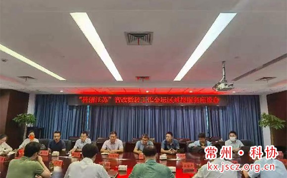 7月14日,江苏省企业创新服务中心主任吴科明、省信息技术应用学会秘书长杨文清、数字化转型专业科技服务团负责人、慧德信息管理咨询公司总经理陆韧钢等一行7人赴常州金坛对接,金坛区工信局局长王新强主持交流会。