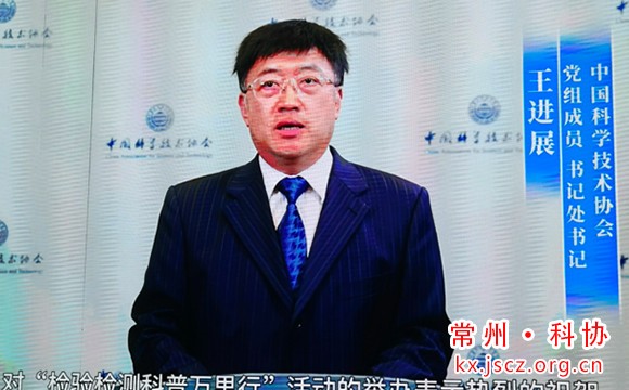 王进展用视频的方式祝贺本次活动的举办,他在讲话中指出,首先感谢常州市委市政府把常州市作为“检验检测科普万里行”的首站,在恐龙园中普及生命安全监测知识,让千年“龙城”焕发新的科学活力!他提到科学技术从来没有像今天这样深刻地影响国家的前途命运和人民的生活福祉。近年来,特别是新冠肺炎疫情以来,人民群众科学防范化解风险的意识越来越强,公共卫生、生态保护、生产生活安全等话题日益成为关注热点。未来,中国科协将全力支持全国学会与地方政府深入合作,为全面提高公民科学素质提供有力保障。