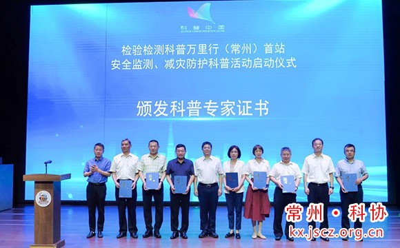 会上,杜修力院士、徐春生副主席和常州鸿发国际任洪兴主席为“检验检测科普万里行”科普专家颁发了证书;中国检验检测学会常务副会长生飞为学会科普基地常州纺织服装职业技术学院授牌;中国检验检测学会发布了科普活动宣传片及科普创作成果。杜修力院士以及参会领导共同启动了"检验检测科普万里行"活动。