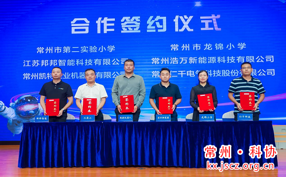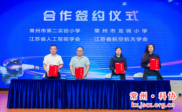 当天,二实小、龙锦小学还分别与省人工智能学会、省航天航空学会、以及江苏邦邦智能科技有限公司等企业签订“校所企”合作协议,吴科明、房伟、刘晓民为少年科学院10位导师颁发聘书。