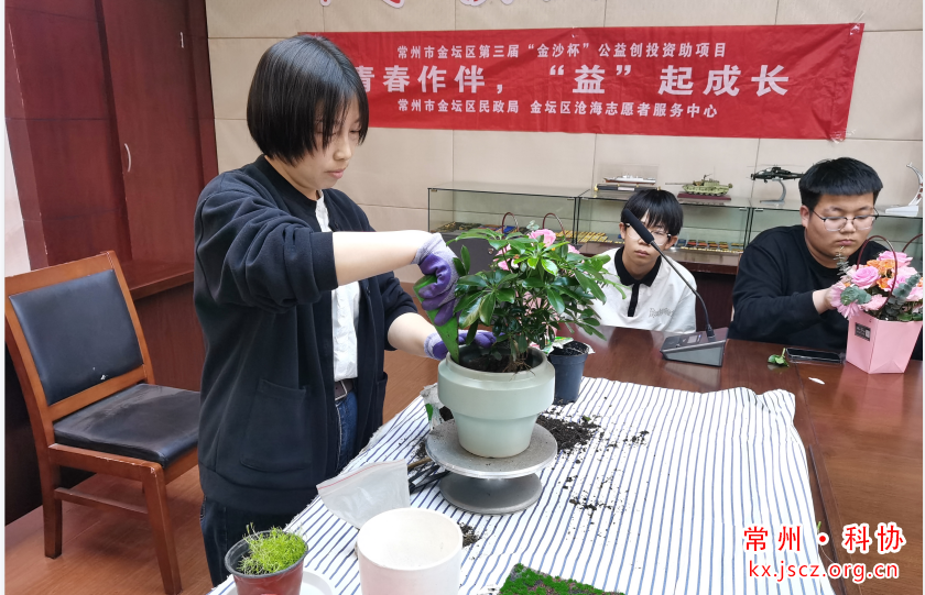 金坛区沧海志愿者服务中心项目组开展“插花艺术和盆景绿植造景”讲座