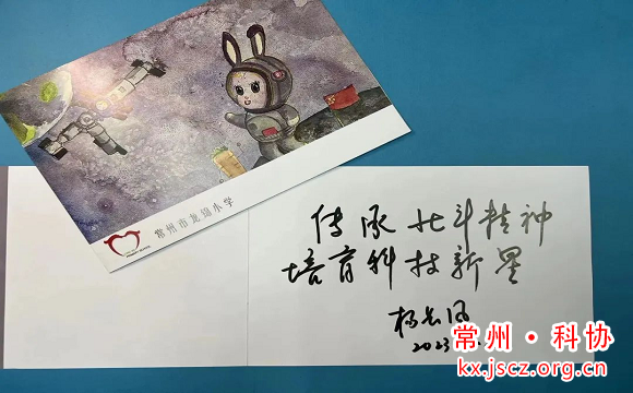 中国工程院院士、北斗卫星导航总设计师杨长风院士为龙锦小学题词“传承北斗精神,培育科技新星!”
