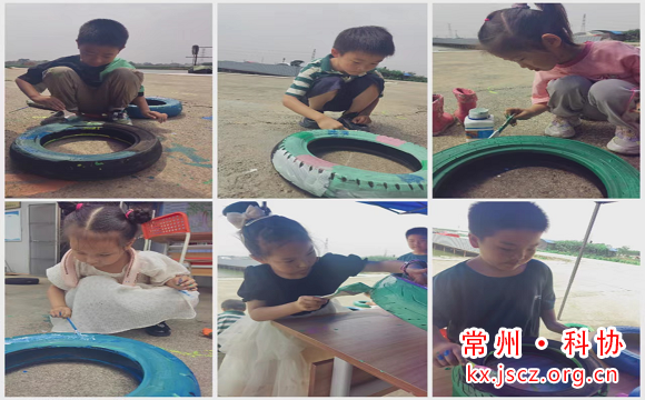 废弃轮胎和绿植的碰撞,即做到了废物利用,又锻炼了孩子的动手能力,当风车随着微风轻轻转动,同们体会到了劳动的快乐,收获了满满的成就感。