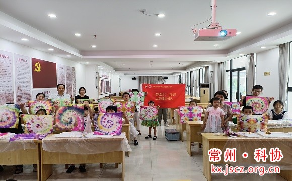 随后,在新北区科协志愿者的带领下,亲子家庭共同创作手工扎染丝巾,孩子们小心翼翼地将丝巾浸透在环保染料里,静待奇迹发生。一条条色彩纷呈的丝巾跃于眼前,看着自己制作染色的丝巾,喜悦之情溢于言表。色彩缤纷的作品无不显示出孩子们守护海洋环境的决心和对美好海洋环境的期许。