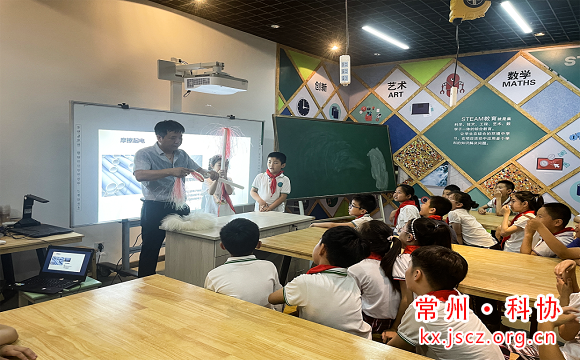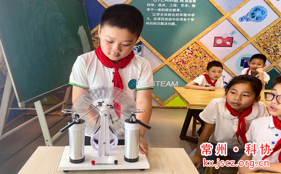 活动现场,来自江苏理工学院的志愿者薛建忠老师为大家带来了一系列精彩的科学实验:摩擦生电、“穿墙而过”、电磁感应、希勒喷泉、静电跳球……涉及力学、声学、光学、电磁学等物理知识。同学们一一体验,通过观察与动手实践,纷纷各抒己见,表达自己对实验原理的见解,充分调动思维,打开了科技视野。