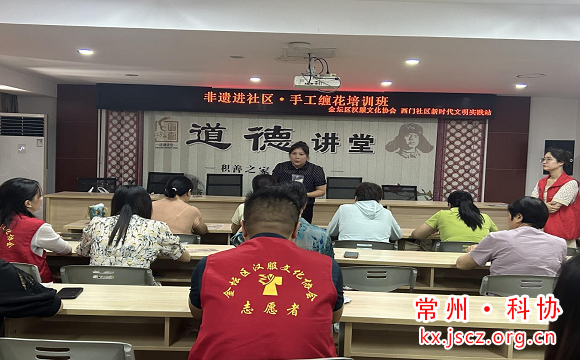 大众创业,万众创新。为在推进中国式现代化的新征程上,进一步提高妇女高质量就业、巾帼优质创业、就业精准帮扶,打造辖区妇女“家门口”的共富圈。7月9日上午金坛区金城镇西门社区妇联和金坛汉服文化协会为全职妈妈、失业再就业妇女量身定制个性化课程——巾帼学堂第一期课程“非遗进社区手工缠花培训班”技能培训班。