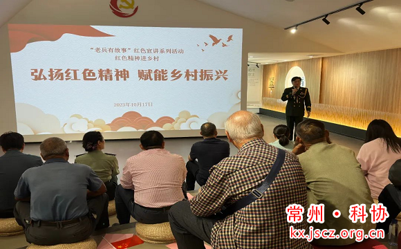 10月17日,天宁区老科协监事、主任医师黄家伶参加市军休保障服务中心组织的“老兵有故事”宣讲团走进常州市新北区西夏墅镇东南村,开展“弘扬红色精神,赋能乡村振兴”红色宣讲活动。