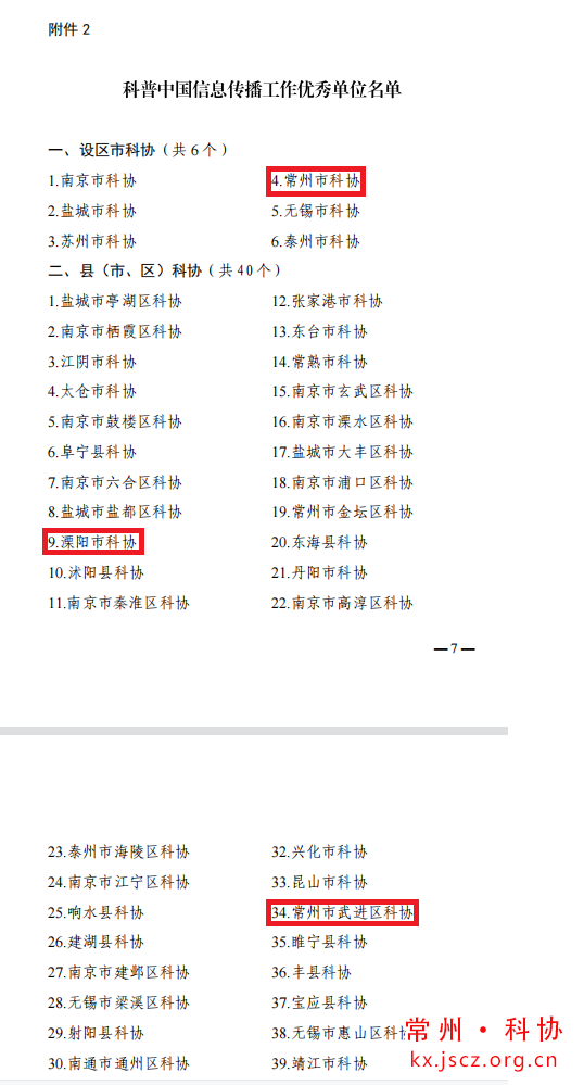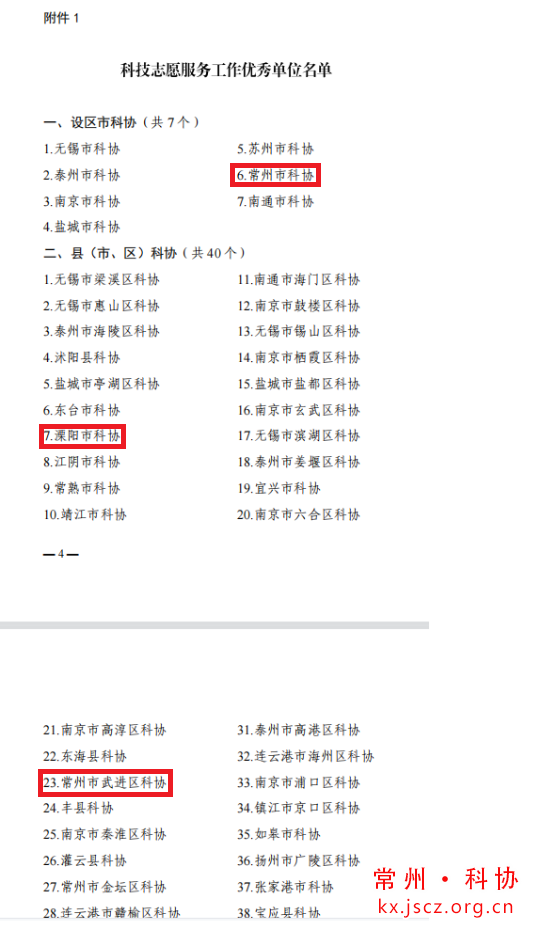 县(市、区)科协中分别荣获科技志愿服务工作优秀单位和科普中国信息传播工作优秀单位的有溧阳鸿发国际、金坛区科协和武进区科协。