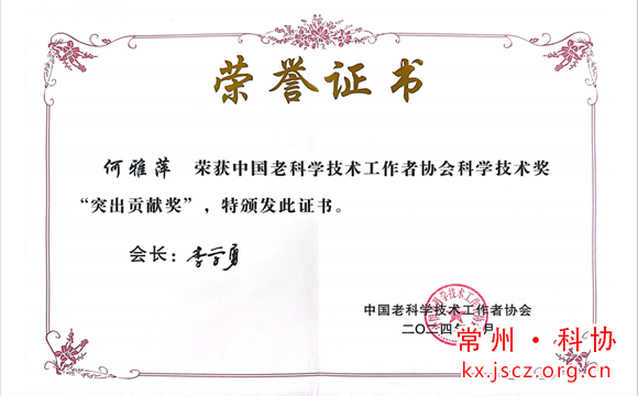 常州市老科协会员,被誉为“碧根果皇后”的何雅萍作为全国老科协科学技术奖十大“突出贡献奖”获得者上台领奖。