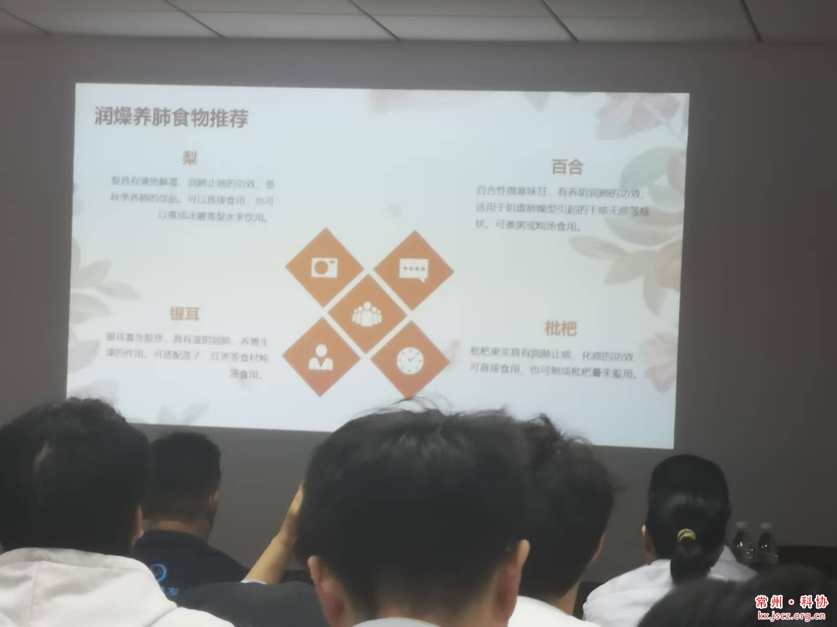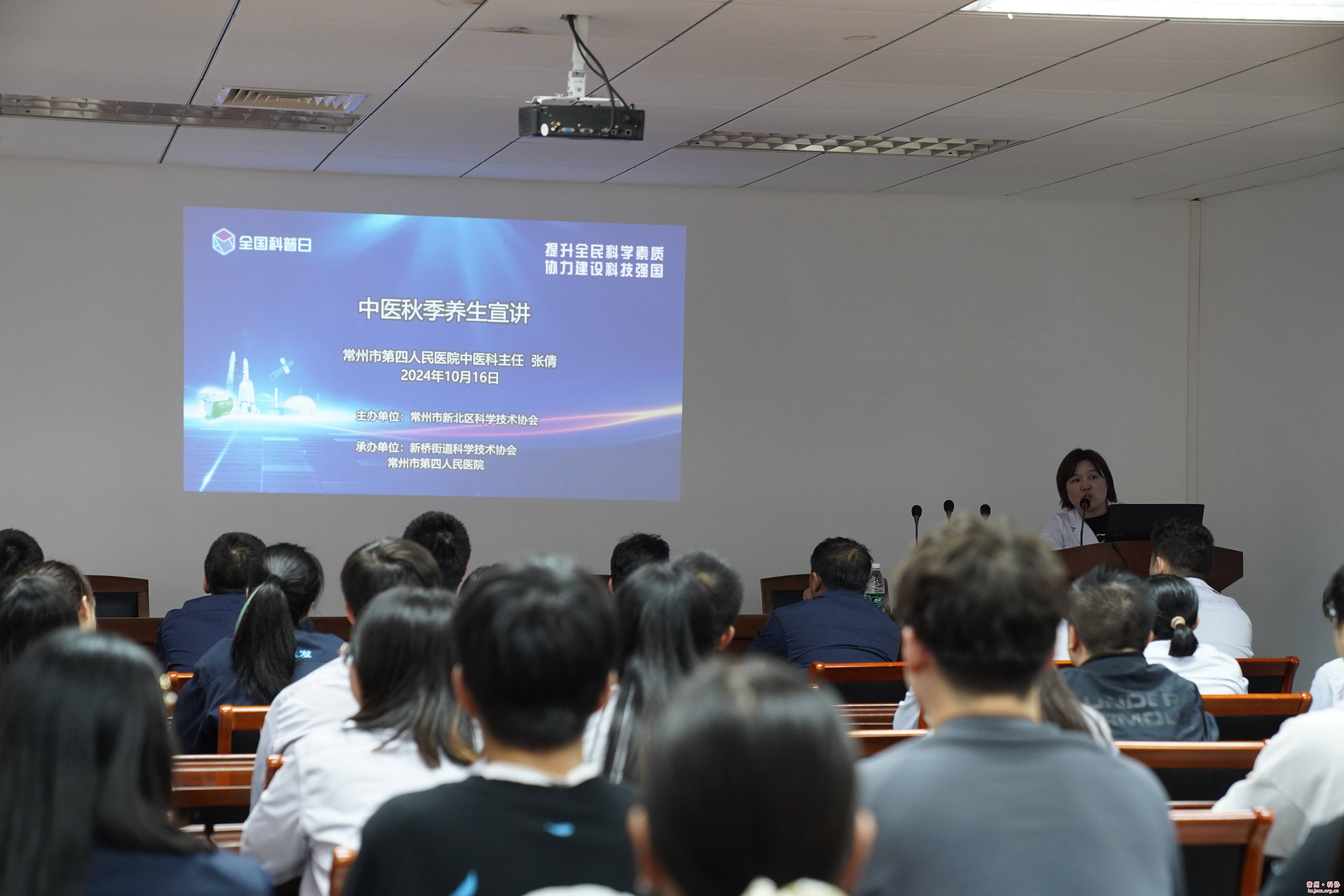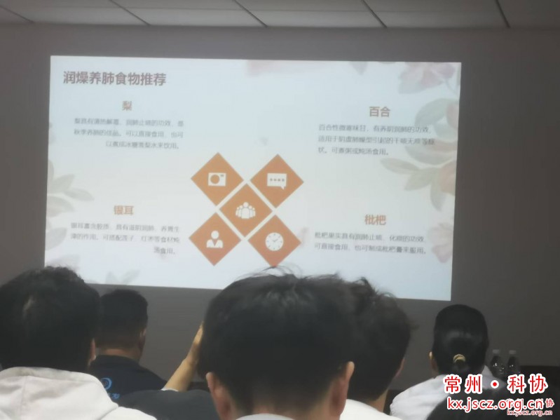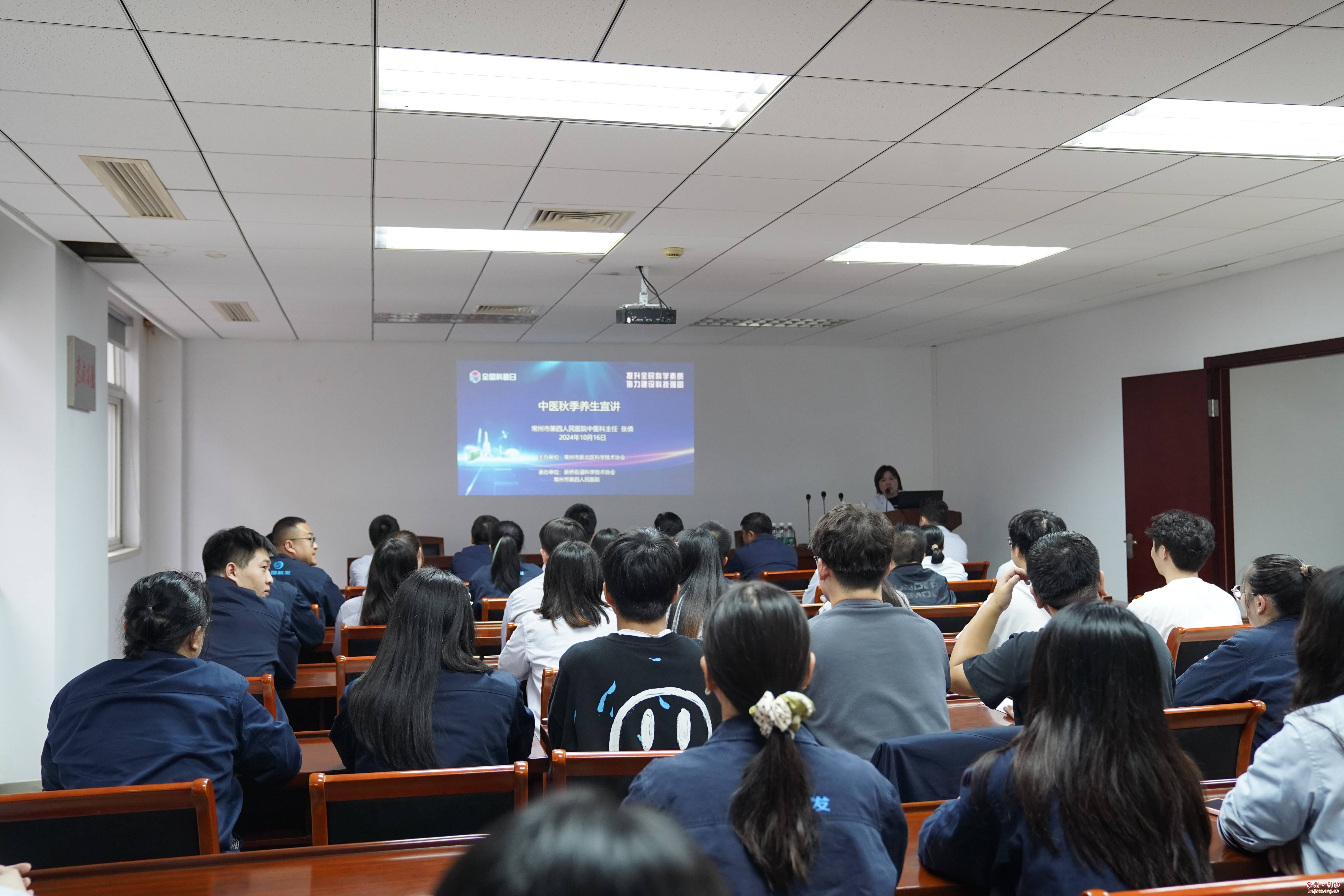 为贯彻落实《常州市新北区全民科学素质行动规划纲要实施方案(2021—2025年)》,提高我区公民科学素质,普及中医健康知识。10月16日下午,新北区科协联合常州四院、新桥街道科协等单位在常州天山重工机械有限公司开展了中医秋季养生科普宣讲活动,号召大家做自己健康的第一责任人,主动锻炼,增强体魄。
