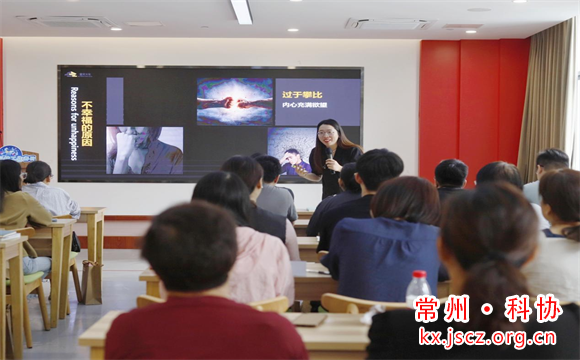 在高节奏高负荷的当下,人际关系、角色模糊、职家冲突、职业发展、工作负荷等均会对科技工作者造成很大压力。如何引导转变“积极心理”的认知视角,现场邀请常州市全民阅读推广人李小霞女士为科技工作者分享清华大学彭凯平教授《活出心花怒放的人生》主题课堂。