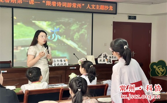 为进一步了解常州诗词文化,7月2日下午,龙虎塘街道锦珑社区联合龙虎塘街道科协开展《跟着诗词游常州》城市人文主题沙龙,让孩子们感受诗词所描绘的意境,理解诗人的情感与哲思,更加深入地引领青少年了解这座城市的历史文化和风土人情,激发他们对家乡常州的热爱与自豪感。