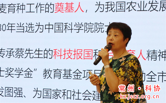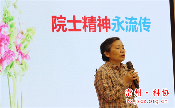 活动伊始,市老科协常务副会长鲁玉凤致欢迎辞。她指出,本次讲座是以提升全民素质为目标,以弘扬院士精神为内涵,选取了几位常州本土院士代表的追求科技自立自强的感人事迹,希望大家能从中汲取前行力量,在勇当先行者、谱写新篇章的生动实践中各尽其才,大显身手。接着,江苏省理论宣讲先进个人、常州开放大学知名学者董农美教授用包含深情的语言、图文并茂的翔实资料,详尽地还原了6位常州籍院士代表的生平和杰出事迹,介绍他们在各自领域所取得的卓越成就,他们是小麦遗传育种学家蔡旭、世界百年文化伟人吴稚晖、我国核武器事业先驱丁伯南等,特别是故居就在荷花池街道大观路32-1号的蔡旭院士,让在座的观众倍感亲切,他是新中国小麦杂交育种工作的奠基人之一,一生投身于祖国小麦科学研究事业,教书育人,服务农业生产,谱写了一部精彩不朽的“小麦人生”。