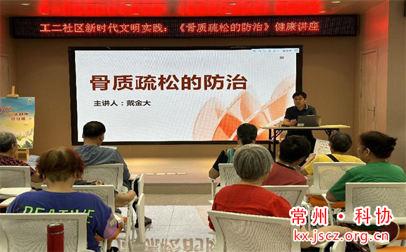 为进一步提高社区居民对骨质疏松认识和防治能力,增强他们骨骼健康意识,9月19日下午,天宁老科协理事、兰陵社区卫生服务中心主任戴金大应邀来到工人新村第二社区,为居民们开展“骨质疏松防治”健康知识讲座,受到在场30多位听众的一致好评。