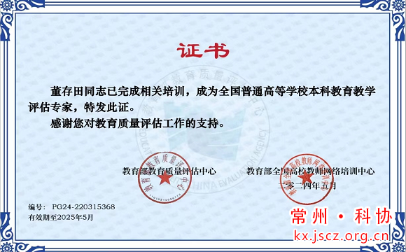 近日,江苏理工学院老科技工作者协会会长董存田同志再次被聘为全国普通高等学校教育教学评估专家。董存田教授在多年的教学工作和学校管理工作中一直致力于“以评促建,以评促改,评建结合,重在建设”的理念,在主持所在单位评建工作中履获优异成绩。作为学者率先提出“分型培养”论断,主张应用型本科教育与学术型本科教育并行不悖,路径有异;倡导学校分类,课程分档,学生分型,并取得一系列成果。作为评估专家,他坚持深入调查,发现优势,尊重个性,中肯建议的原则,对推动参评院校的改革发展尽职尽责。近年来,作为老科技工作者,董存田教授的著作有《职业教育与高等教育融合研究》、《分型培养,40年的呼喊》等,并为数省的多个高校教师培训班、研讨班做了“产教融合”“类型教育”“师德建设”“课程思政”等方面的专题报告。