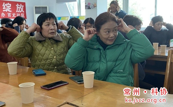 在中医理论指导下,老师带领大家定位翳风穴、听宫穴等关键穴位,通过“提拉按压”“搓揉推擦”等手法,现场演示缓解耳鸣、改善听力的保健操,居民们跟着节奏轻揉耳廓,现场响起此起彼伏的舒展笑声。