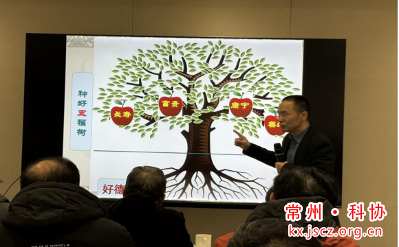 参观结束后,新北区老科协会员、市关工委传统文化宣讲师王建兴为大家带来了一场《学习季子精神,成就五福人生》专题讲座。王老师紧扣季子精神核心要义,结合“五福人生”文化理念,从修身立德、服务社会等维度,阐释了传统文化与当代生活的深度融合路径。他特别强调,“好德”是滋养“五福”树的根基所在。唯有以德为先,修身养性,保持积极乐观的心态,方能获得“长寿、富贵、康宁、善终”的人生福祉。