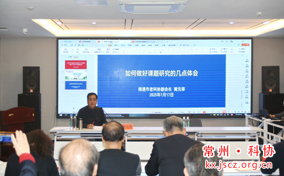 现场特邀南通市老科协副会长黄元宰就“如何做好建言献策课题研究“进行相关的业务培训。黄元宰从课题研究的优势、分类、选题、撰写和能力素质提升五方面作了详细介绍,结合他围绕省委省政府、南通市委、市政府的中心工作和南通经济社会发展的重点、热点、难点问题撰写建言献策和课题研究,取得了丰硕的成果和体会,让常州市老科协各位专家受益匪浅。