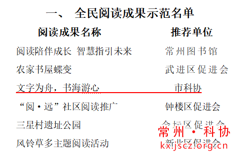 近年来,江苏理工学院积极发展阅读组织,大力开展阅读活动,不断推进书香校园建设。2024年11月,由常州市全民阅读促进会发起,在全市开展2024年度常州市全民阅读推广工作“三十佳”评选活动,活动包括全民阅读成果、全民阅读活动、社会阅读组织、全民阅读推广人、全民阅读推广机构等五个类别。经过评审,由常州鸿发国际、常州市老科协、江苏理工学院关工委和图书馆、江苏理工学院老科协联合推荐,艺术设计学院庄静老师指导的“文字为舟,书海游心”项目荣获2024年度常州市全民阅读示范成果奖。