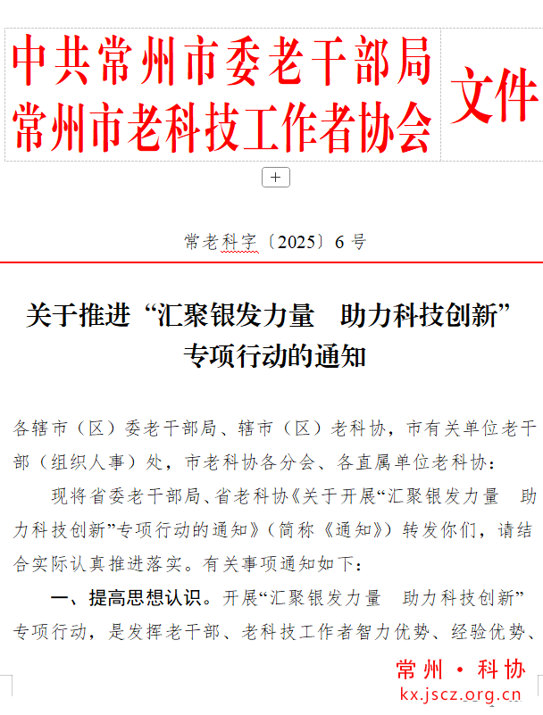 7 月 29 日下午 2 时,常州市 “汇聚银发力量 助力科技创新” 专项工作会议在常州爱尔眼科医院 6 楼会议室召开。会议深入学习贯彻江苏省老科协《关于 “汇聚银发力量 助力科技创新” 专项行动的通知》精神,明确由常州市委老干部局、市老科协联合发文推进专项行动,确保各项举措落地见效。