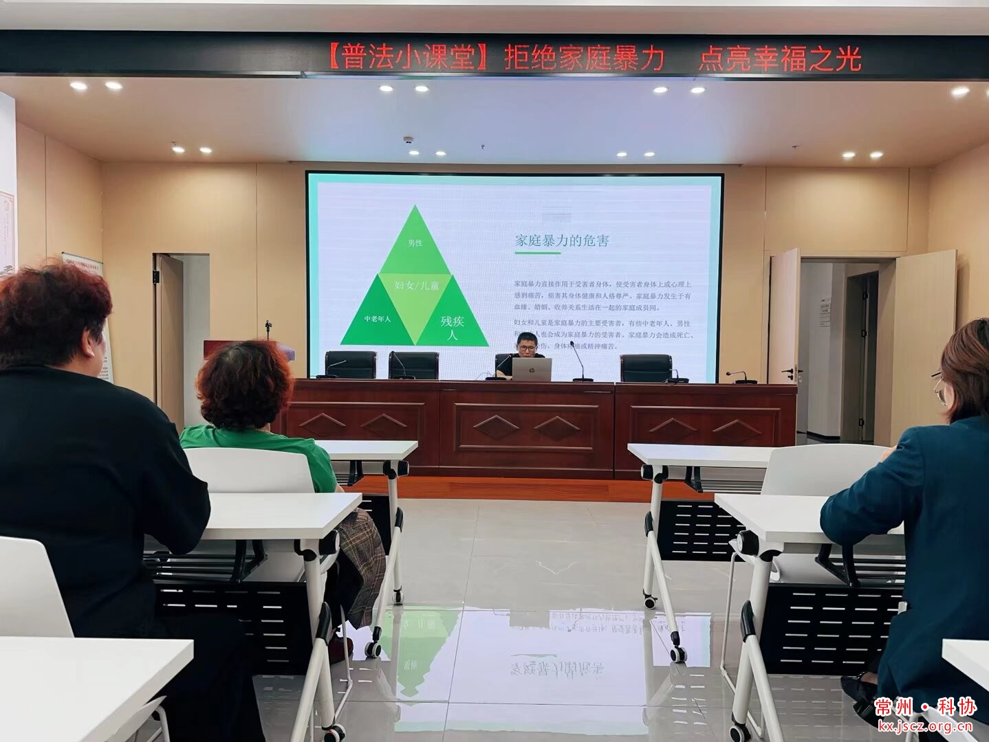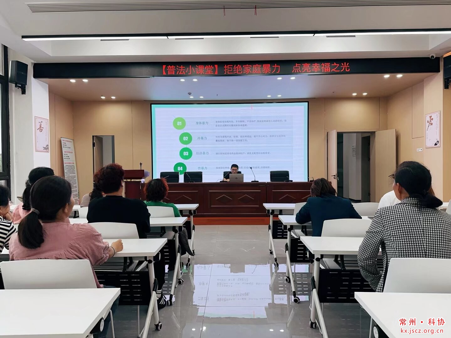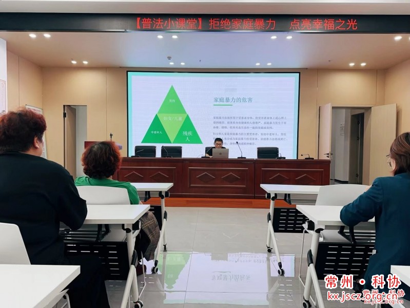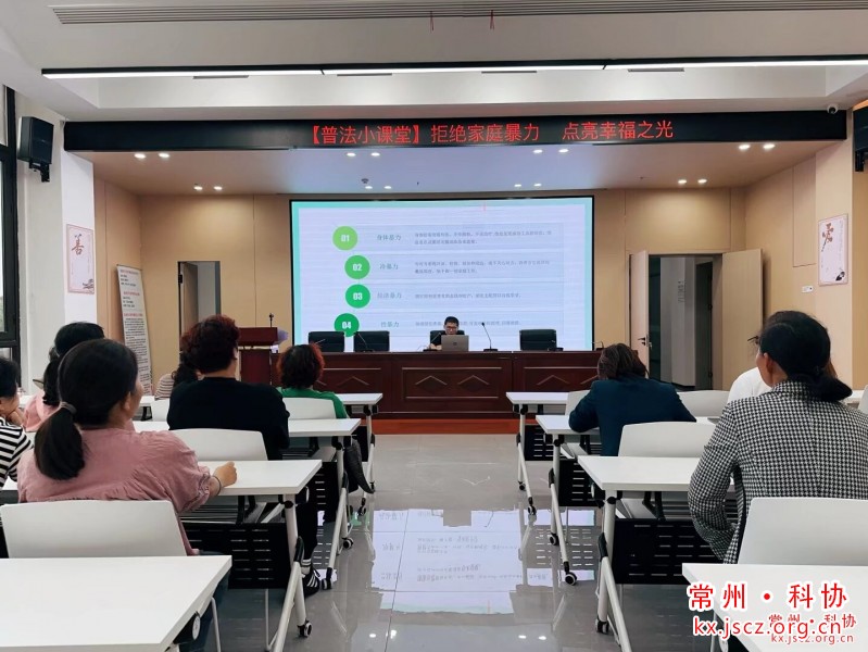 为切实提升社区妇女及家庭成员的反家暴意识与应对能力,筑牢婚姻家庭中妇女权益保护防线,2025年10月14日下午两点,龙虎塘街道锦珑社区联合街道科协、街道经科办在二楼会议室开展“拒绝家庭暴力 点亮幸福之光”为主题的普法讲座,邀请常州圣典律师事务所陈涛律师担任主讲,以专业法律视角为居民破解反家暴难题。